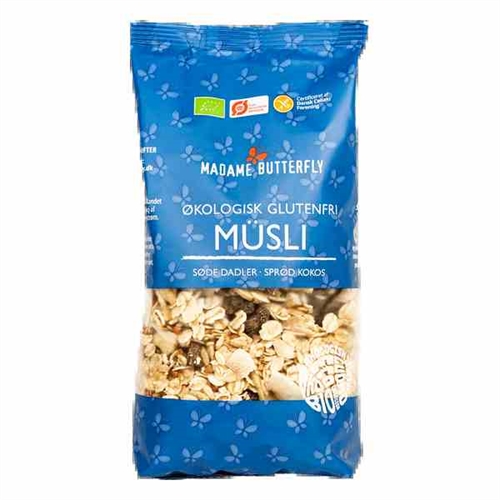 Müsli med søde dadler og sprød kokos, GF, Økologisk - 275 Gram - Madame Butterfly